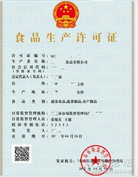 2016年新版食品生產(chǎn)許可證